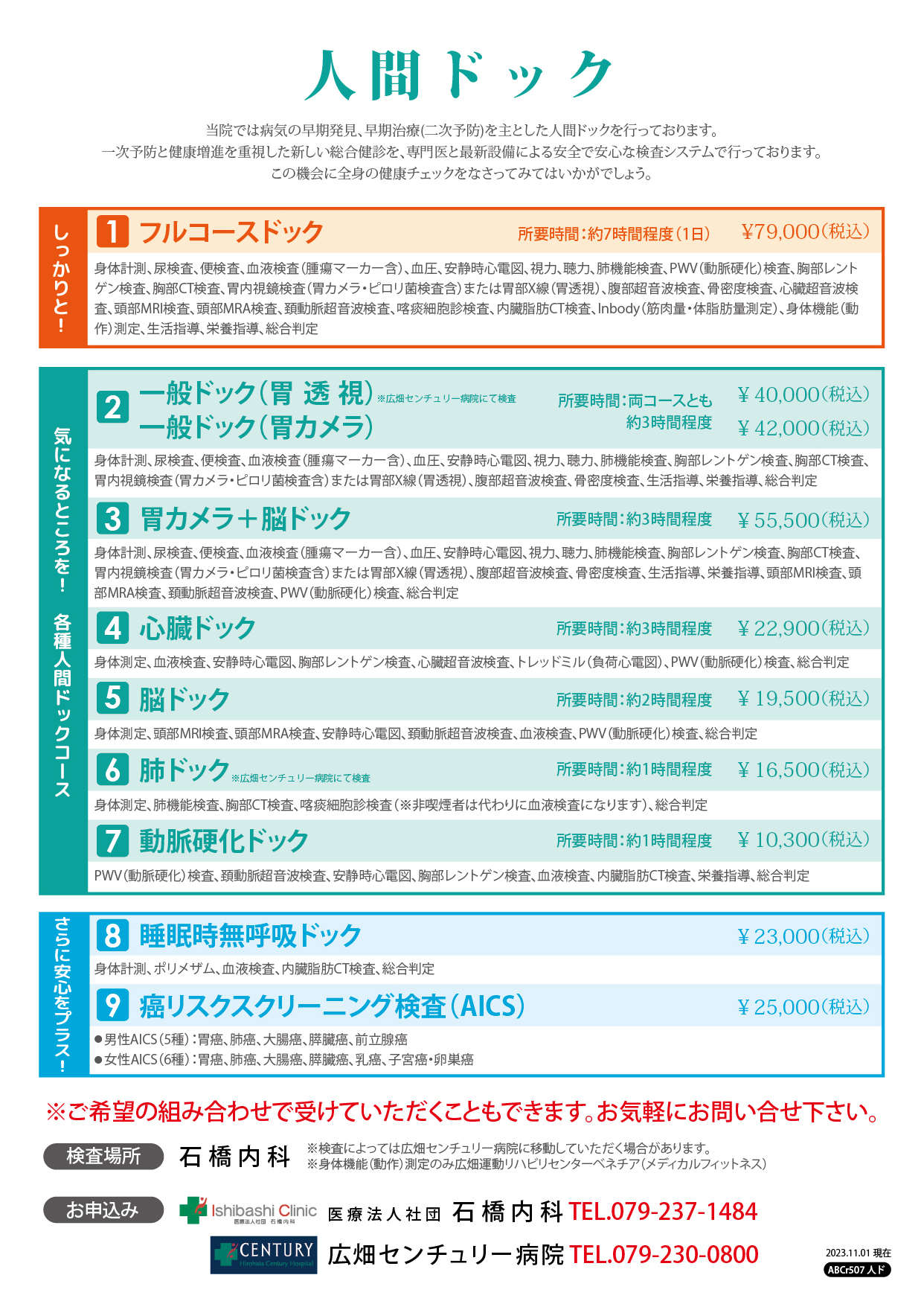 当院では病気の早期発見、早期治療(二次予防)を主とした人間ドックを行っております。一次予防と健康増進を重視した新しい総合検診を、専門医と最新設備による安全で安心な検査システムで行っています。この機会に全身の健康チェックをなさってみてはいかがでしょう。